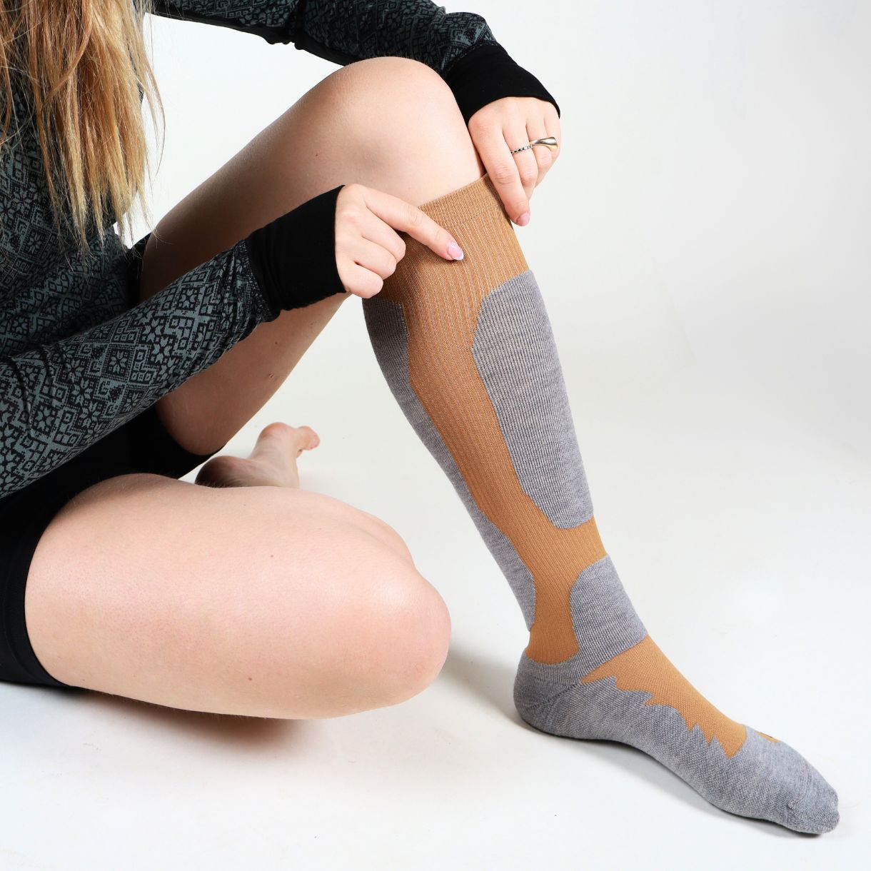Elite compression stocking for skiing from SupCare contains all the relevant design and functional elements for the ultimate ski / snowboard / alpine compression stocking.
